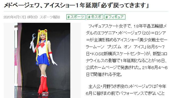 据报知体育4月17日消息,原计划由俄罗斯花样滑冰名将、2018年平昌冬奥会女子单人滑亚军梅德韦杰娃(20岁)担任主演的冰上演出,昨天组委会透过官方网站发表了延期一年的决定。