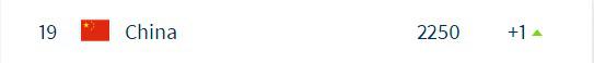 中国男、女队最新积分及世界排名。